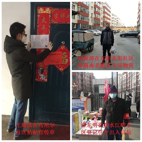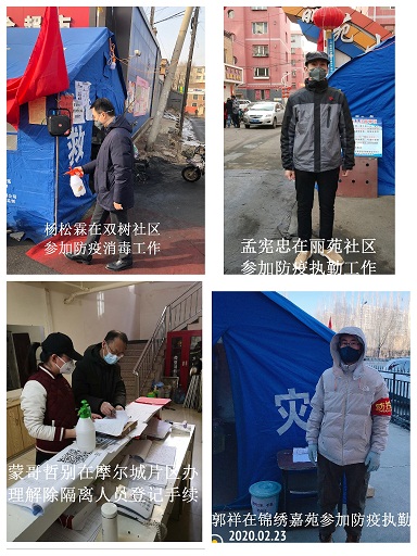 工程處入黨積極分子白文平、職工馬志強(qiáng)、曹明晴、成秀英、楊建剛是金城小區(qū)項目的工程師,疫情發(fā)生后,他們積極響應(yīng)公司號召到各自社區(qū)金城小區(qū)、橋靠社區(qū)、星河御園小區(qū)、廣廈小區(qū)、望興園小區(qū)參加疫情防護(hù)工作。他們在各自防控小組中,恪盡職守、站崗執(zhí)勤,每當(dāng)遇上大風(fēng)變天或值夜崗時,值守人員都很難取暖,但為了有效防控疫情,他們克服困難自備棉服、把全部問題都扛了下來。同時他們有的白天協(xié)助社區(qū)工作人員辦理登記、執(zhí)勤工作,晚上還要利用空余時間張貼宣傳單,默默的奉獻(xiàn)和堅守又何嘗不是為群眾們再加一層最強(qiáng)的防護(hù)網(wǎng)呢!