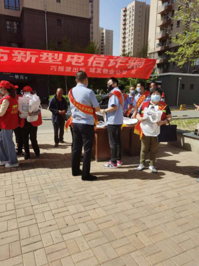 5月15日,城發(fā)物業(yè)公司在陽光美居小區(qū)進行了防范電信詐騙宣傳活動。