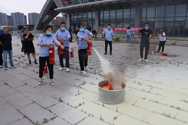 安全技術(shù)處消防員王騰飛講解滅火器及消防器材的使用方法和注意事項(xiàng),現(xiàn)場(chǎng)人員都積極參與到消防器材滅火的實(shí)操中。