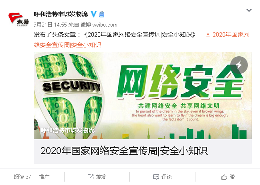 城發(fā)物流公司開展2020年國家 網(wǎng)絡(luò)安全宣傳周活動