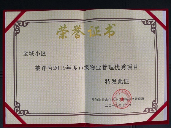 9月29日,城發(fā)物業(yè)金城小區(qū)項目被呼和浩特市住宅小區(qū)環(huán)境秩序管理局評為物業(yè)管理2019年度市級優(yōu)秀項目。