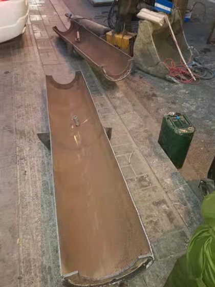 據(jù)悉,此次堵漏是將DN400的鋼管,上下一分為二,分為兩片,下面的部分加裝泄水閥,然后將上下合攏把原管道扣在里面,兩端用鋼板做內(nèi)徑250和外徑400的擋板,將泄露段整體包封在里面。水流從下部泄水閥泄走,不影響焊接,在整體焊接完,關(guān)閉泄水閥。