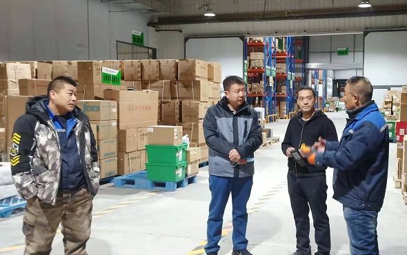 檢查組進(jìn)入國(guó)大倉(cāng)儲(chǔ)庫(kù)房學(xué)習(xí)并進(jìn)一步了解了配送流程,認(rèn)真聽(tīng)取了國(guó)大庫(kù)房管理人員對(duì)配送業(yè)務(wù)的意見(jiàn)和建議。雙方表示要加強(qiáng)交流和溝通,做好配送業(yè)務(wù)。