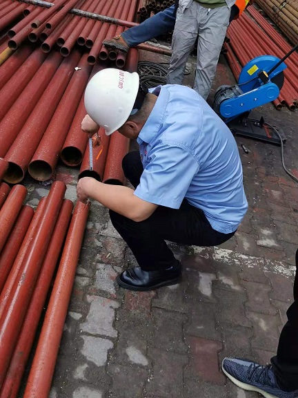 第二站檢查組來(lái)到設(shè)備材料儲(chǔ)存現(xiàn)場(chǎng),任強(qiáng)查驗(yàn)了到場(chǎng)管材的長(zhǎng)度及厚度,對(duì)管材的質(zhì)量給予了肯定。他要求,進(jìn)場(chǎng)安裝前要做好準(zhǔn)備工作,管材的尺寸要測(cè)算好,避免浪費(fèi)。