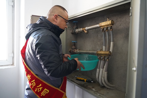 正說著,一位大娘來到我們宣傳現(xiàn)場,向客服人員反映家中暖氣不熱,客服人員詳細登記了老人樓棟門牌號后,隨機安排工作人員前往老人家中查看情況。客服人員先是入戶為老人進行了測溫,在老人反映最冷的陰面房間,客服人員利用專業(yè)的測溫儀,測得當時室溫23.6℃。由于當時是陽光充足的晌午,考慮到目前室溫受光照的影響,工作人員又仔細認真地查看了大娘家的地暖分集水器。通過對分集水器的檢查,工作人員發(fā)現(xiàn)大娘家地暖盤管有明顯的堵塞情況,需要進行沖洗。工作人員將這一情況詳細向大娘進行解釋,并為其沖洗了濾網(wǎng)。對于工作人員熱情、認真的服務,大娘一個勁地說好。