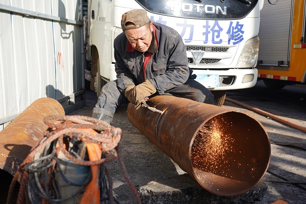 中午11點(diǎn)筆者離開現(xiàn)場時(shí),開始焊接新管。截止下午2點(diǎn)發(fā)稿時(shí),電廠已開始注水,停暖的用戶家中暖氣也在逐漸升溫。