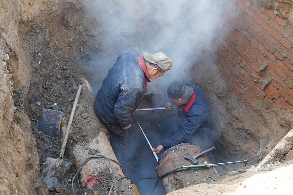 據(jù)悉,此次出現(xiàn)故障的是DN350管線,搶修需在泄水泄壓停暖的狀態(tài)下進(jìn)行,該管道為供水管道,管內(nèi)熱水溫度高達(dá)90多度,這也加大了搶修難度。"為確保此次受影響的65萬平米熱用戶能夠及早恢復(fù)供熱,金橋分公司馬不停蹄地連夜施工,進(jìn)行搶修。"王永彪說。