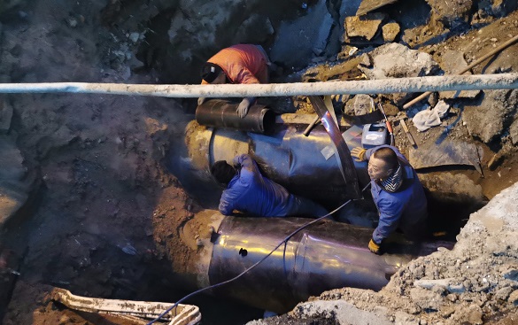 此次搶修采用DN800管道做"袖套"進(jìn)行管道焊接修復(fù),為整個(gè)搶修爭取了近1天的時(shí)間,最大程度保障了轄區(qū)熱用戶的供暖,為百姓的冬天筑起了一道最有力、最堅(jiān)固的溫暖防線。