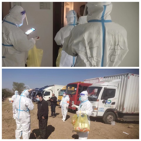 4月18日早7點(diǎn),城發(fā)物業(yè)公司抽調(diào)郝曉東、白巖、烏力更三位同志前來(lái)支援惱包物流園區(qū)防疫工作,他們的抗疫工作任務(wù)是惱包園區(qū)內(nèi)北側(cè)露天停車場(chǎng)貨運(yùn)車輛管控,負(fù)責(zé)對(duì)57輛貨運(yùn)車輛及71位司機(jī)進(jìn)行防疫管控,登記排查車輛信息、餐食發(fā)送、體溫監(jiān)測(cè)、人員管控。疫情防控期間,他們不畏艱辛、勇于向前,開展核酸檢測(cè)工作490余次、體溫檢測(cè)210余次、共計(jì)發(fā)放餐食350余人次。在21日完成停車場(chǎng)人員分流管控工作后,22日接到新的防疫工作指令,隨即又沖向一線,開展3棟信息樓共300余人體溫監(jiān)測(cè)、日常信息報(bào)送等防疫工作,24日順利完成所有的防疫工作。