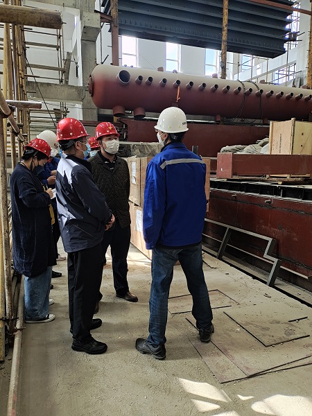 在三合村分公司200T燃煤熱水鍋爐等量替換工程現(xiàn)場(chǎng),楊杰詳細(xì)聽(tīng)取了工程的進(jìn)展及復(fù)工復(fù)產(chǎn)工作準(zhǔn)備情況,并針對(duì)目前存在的困難和問(wèn)題,現(xiàn)場(chǎng)辦公研究解決方案。