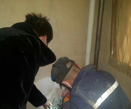 去年12月21號,玉泉分公司首站熱力站失水量突然加大,工作人員迅速開始下地溝排查,在排查到文化大院南樓時發(fā)現(xiàn),是東單元一樓中戶家穿樓管因年久腐蝕嚴(yán)重導(dǎo)致跑水,工作人員當(dāng)即聯(lián)系到了該熱用戶,入戶查看后發(fā)現(xiàn),由于之前該用戶在裝修房屋時將穿樓管包進了訂制的櫥柜內(nèi),要想更換管道必須刨開一部分地面并拆除一部分櫥柜才可以,一樓熱用戶要求樓上其他熱用戶共同承擔(dān)恢復(fù)費用,工作人員多次協(xié)調(diào)樓上熱用戶未果后,只好關(guān)閉了該棟樓廚房一環(huán)暖氣并給熱用戶留下了電話號碼,待大家商量好再來為他們更換管道。"我們幾家已經(jīng)商量通了,麻煩你們抽時間來給換換管子。"4月23日,玉泉分公司工作人員接到了一樓熱用戶的電話。副所長趙雷和同事準(zhǔn)備好工具立即來到熱用戶家中,泄水、拆櫥柜、破地面……經(jīng)過一整天的忙碌,他們克服了空間狹小、操作不便等困難,更換了4米長的兩段管道,同時為熱用戶恢復(fù)了地面,熱用戶連聲道謝。