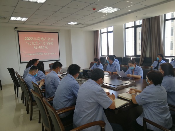 全國第21個"安全生產月"到來之際,房地產公司于6月1日下午,在11樓會議室舉行了以"遵守安全生產法 當好第一責任人"為主題的"安全生產月"啟動儀式。公司各處室負責人及工程處全體人員參加了本次活動。