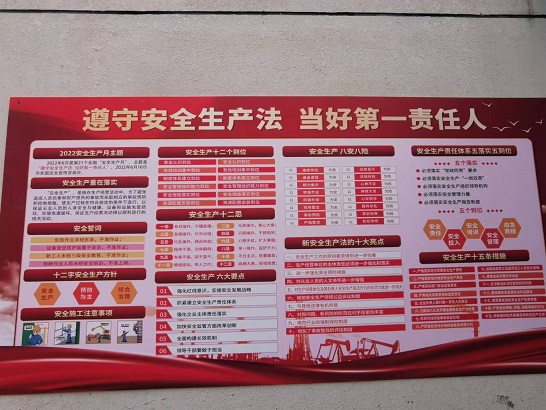隨著全國(guó)第21個(gè)"安全生產(chǎn)月"的到來(lái),管網(wǎng)公司按照集團(tuán)公司"安全生產(chǎn)月"活動(dòng)方案的工作部署,以"遵守安全生產(chǎn)法 當(dāng)好第一責(zé)任人"為主題制訂了管網(wǎng)公司2022年度"安全生產(chǎn)月"活動(dòng)實(shí)施方案;明確了"安全生產(chǎn)月"期間各項(xiàng)工作的開(kāi)展時(shí)間、活動(dòng)形式、活動(dòng)內(nèi)容及工作要求,并于6月2日上午召開(kāi)了啟動(dòng)動(dòng)員大會(huì),制作了宣傳條幅、宣傳展板懸掛于公司辦公區(qū)域內(nèi)。