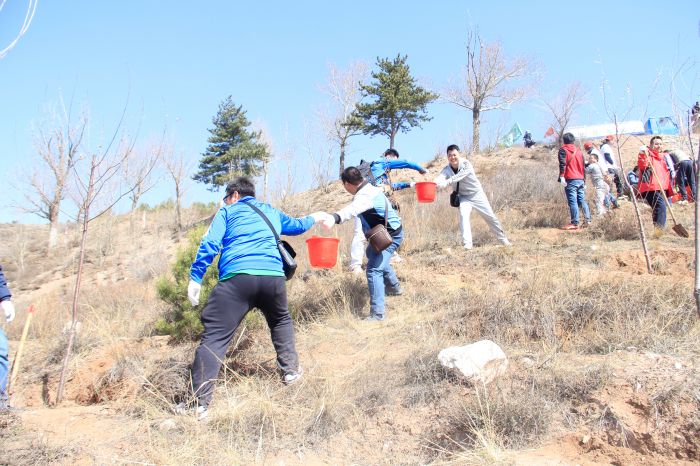 活動現(xiàn)場,公司團員青年在團委副書記郭振宇的帶領(lǐng)下,有序的加入到植樹活動的行列中,植樹現(xiàn)場一派熱火朝天,大家干勁十足,配合默契,三人一隊,五人一組,忙的不亦樂乎。在綠化技術(shù)人員的指導下,大家分工協(xié)作,有的挖坑,有的扶苗,有的培土到處都是忙碌的身影。大家不顧鞋褲上的泥土,一起揮鍬揚土,把一棵棵樹苗穩(wěn)穩(wěn)地栽好,并精心地把土踩實,為它們澆灌生命之水,經(jīng)過一個半小時的辛勤勞動,共栽植30余棵山桃樹,大家用自己的行動和汗水把青年林裝點得更加生機盎然。