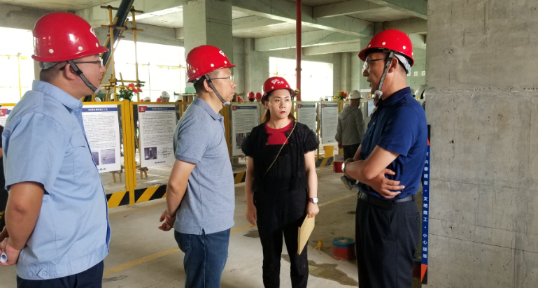 在接下來的現(xiàn)場觀摩環(huán)節(jié),重點對項目標準化、綠色建設(shè)、數(shù)字建造等施工理念的應(yīng)用和先進工藝進行展示。與會人員參觀了工程實體質(zhì)量精益管控、BIM技術(shù)及動畫演示、噪音(粉塵)監(jiān)測控制聯(lián)動系統(tǒng)等創(chuàng)新技術(shù)應(yīng)用,聽取了興泰公司技術(shù)負責人現(xiàn)場講解和經(jīng)驗介紹。