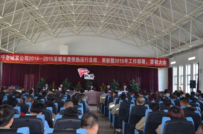 2015年5月12日,城發(fā)召開;2014~2015采暖年度供熱運(yùn)行總結(jié)、表彰暨2015年工作部署、簽狀大會(huì),公司領(lǐng)導(dǎo)班子成員、部室及分子公司負(fù)責(zé)人等200多名公司職工參會(huì)。