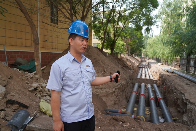 白云偉說,"這段供熱管線下面還有一段天然氣管線。這段管溝長度僅55米多,但施工難度較大,機(jī)具僅開挖了表層,其余是人工開挖,人工開挖就進(jìn)行了三天,55米管溝開挖、鋪設(shè)管道就用了一周的工期。"