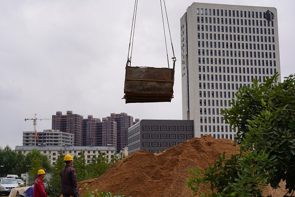 9月24日上午,筆者遠(yuǎn)遠(yuǎn)看到一吊車(chē)正將坑內(nèi)挖掘的土方吊起,走近作業(yè)坑,看到坑內(nèi)小型挖掘機(jī)正在開(kāi)挖土方,還有2名施工人員正在進(jìn)行鋼筋網(wǎng)片的焊接。
