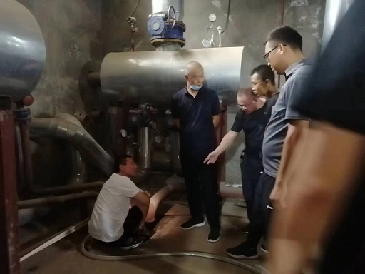 走訪中,每到一個運營所首先查看了當天人員值班情況,并仔細地詢問了各所防汛物資準備情況。在理想佳苑熱力站和所里工作人員一起查看了地下站的積水坑和備用排污泵情況。在中海錦繡城熱力站和宇泰熱力站查看了站內(nèi)滲漏點,并要求運營所負責人盡快和物業(yè)聯(lián)系,解決滲水點存在的安全隱患,要即刻做好設備的防滴漏防水保護。在檢修所一次網(wǎng)抽水現(xiàn)場作業(yè)現(xiàn)場,要求近兩天停止抽水作業(yè),保證施工作業(yè)安全,同時將工作重心轉移到近兩天防汛排水保障搶險任務中。