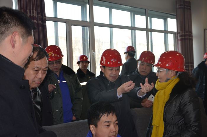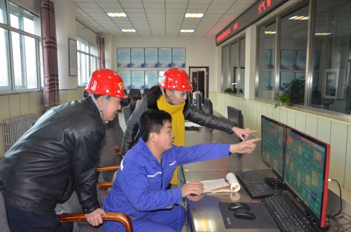 城發(fā)公司董事長張瑞平在橋靠司爐車間給環(huán)保局領(lǐng)導講解脫硫情況