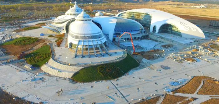 截止到2017年5月5日,內(nèi)蒙古少數(shù)民族群眾文化體育運(yùn)動(dòng)中心完成投資7.68億元,室外工程完成80%,外景初見(jiàn)效果,施工現(xiàn)場(chǎng)綠意盎然,充滿生機(jī)。