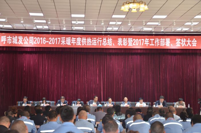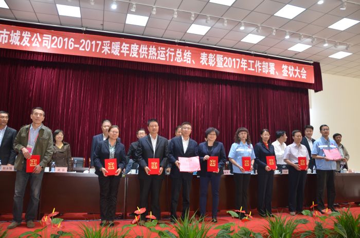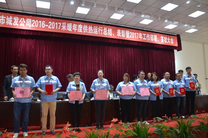 會上,吳利勤副總經(jīng)理作《呼市城發(fā)供熱有限責(zé)任公司20162017采暖年度運(yùn)行總結(jié)》報告;黨委副書記張永宣讀《城發(fā)公司黨委關(guān)于表彰2016年度先進(jìn)集體、優(yōu)秀干部和勞動模范(先進(jìn)工作者)的決定》,授予辛家營分公司等18個單位呼市城發(fā)公司2016年度先進(jìn)集體、吳利勤同志呼市城發(fā)公司2016年度優(yōu)秀高層干部、呂曉玲等15名同志呼市城發(fā)公司2016年度優(yōu)秀中層干部、李娟等77名同志呼市城發(fā)公司2016年度勞動模范(先進(jìn)工作者)榮譽(yù)稱號,并頒發(fā)獲獎證書;總經(jīng)理呂德育與內(nèi)蒙古少數(shù)民族群眾文化體育運(yùn)動中心項(xiàng)目等負(fù)責(zé)人簽訂責(zé)任狀。