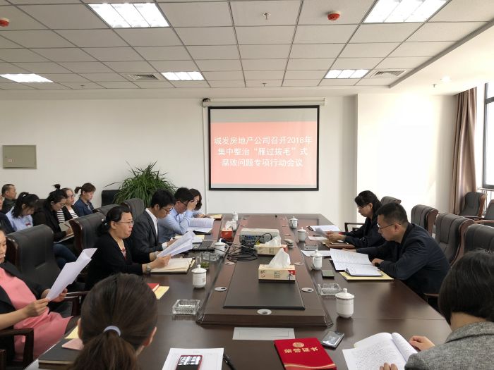 上午,城發(fā)房地產(chǎn)公司黨支部組織召開了房地產(chǎn)公司2018年集中整治雁過拔毛式腐敗問題專項(xiàng)行動(dòng)會(huì)議,公司全體干部職工共30人參加會(huì)議。