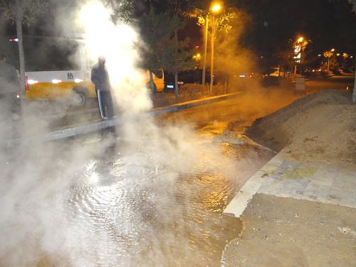 工作人員兵分幾路,對(duì)一次網(wǎng)和熱力站進(jìn)行泄水,同時(shí)在跑水地點(diǎn)進(jìn)行開(kāi)挖,并將水抽干,待破損管網(wǎng)露出后,按預(yù)定技術(shù)方案進(jìn)行更換和焊接。時(shí)值入冬,夜間溫度已在零下,相關(guān)領(lǐng)導(dǎo)及搶修人員一直在現(xiàn)場(chǎng)工作,無(wú)人休息,毫無(wú)怨言。在寒風(fēng)中工作人員咬緊牙關(guān),爭(zhēng)分奪秒,連續(xù)奮戰(zhàn)了10多個(gè)小時(shí),終于在第二日凌晨7時(shí),成功將跑水事故處理完畢,并于12時(shí)恢復(fù)了熱力站正常運(yùn)行。