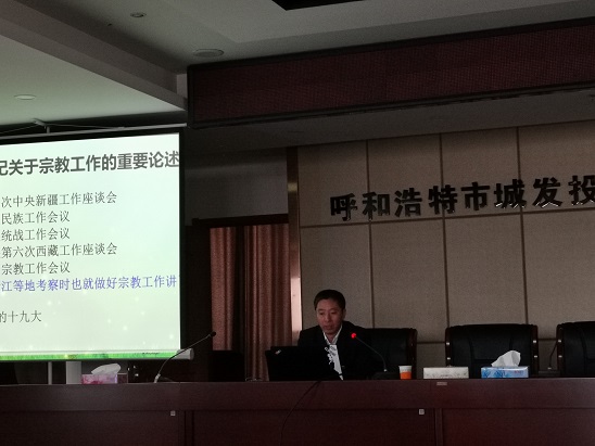 11月5日,城發(fā)公司黨委邀請(qǐng)市黨校黨史黨建教研室副教授、內(nèi)蒙古習(xí)近平新時(shí)代中國(guó)特色社會(huì)主義思想研究中心研究員蘇航同志在公司18樓會(huì)議室開(kāi)展了“扎實(shí)做好新時(shí)代我區(qū)宗教工作——全面貫徹習(xí)總書(shū)記關(guān)于宗教工作重要論述”的專(zhuān)題講座。公司領(lǐng)導(dǎo)班子、全體中層干部約90人進(jìn)行了集中學(xué)習(xí)。