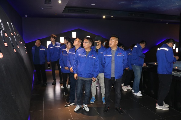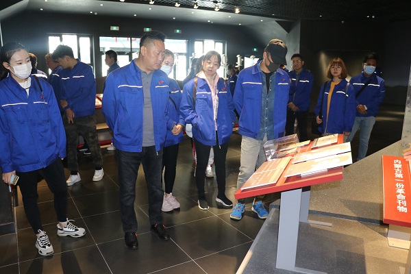 活動中,大家先是參觀了大青山紅色文化公園的勵志廣場和歷史展廳。其中歷史展廳以“大青山里的革命故事”為展示主題,分為三個展廳?!洞笄嗌降貐^(qū)革命英烈》展廳以“山高人為峰”為設(shè)計理念,突出由290位先烈與前輩所組成的山造型,通過多媒體手段輔助氛圍,用模型蠟燭點綴悼念革命英烈及革命前輩的悲壯雄偉與功勛卓著?!洞笄嗌降貐^(qū)革命史展覽》展廳以“正觀·背看”為特色,正觀--從展廳入口望去,展覽山體造型由低到高宛如群山疊疊展開,大青山的氣勢一覽無余;背看--觀眾進(jìn)入“山”中,隨著光線由昏暗向明亮的變化,大青山革命史內(nèi)容也由艱難革命向輝煌成就依次展開,展桌、展板、多媒體等在山中構(gòu)成了基礎(chǔ)展示形式,大型雕塑場景以及歷史環(huán)境再現(xiàn),充分的表達(dá)了“大青山里的革命故事”這一主題?!洞笄嗌降貐^(qū)革命前輩》展廳,向我們展示為了大青山地區(qū)的解放做出重大貢獻(xiàn)的諸多革命前輩。