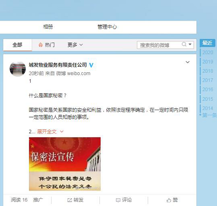 此外,公司還充分運用電子顯示屏、微博等媒介宣傳、普及保密法律法規(guī),把保密和密碼宣傳教育工作延伸到廣大群眾中去,努力樹立保守國家秘密人人有責的意識和國家觀念。