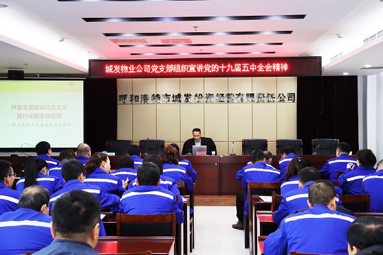 12月1日下午,城發(fā)物業(yè)公司黨支部在集團(tuán)十八樓會(huì)議室,邀請(qǐng)市委黨校社會(huì)管理與文化教研室主任孫忠輝副教授宣講黨的十九屆五中全會(huì)精神。城發(fā)物業(yè)公司、物流公司、房地產(chǎn)公司、客運(yùn)公司、管網(wǎng)公司等領(lǐng)導(dǎo)班子成員、黨員干部80余人參加學(xué)習(xí),城發(fā)公司黨委副書記張永、城發(fā)公司副總經(jīng)理王觀法到會(huì)聽課。