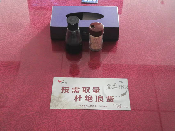 開展一次主題宣傳。公司黨支部以集團公司食堂為宣傳主陣地,開展了以“光盤行動”為主題的宣傳活動:通過集團公司食堂電子屏幕滾動播放了習近平總書記關于厲行節(jié)約、制止餐飲浪費的重要指示精神及相關公益宣傳短片;在食堂宣傳陣地、取餐用餐等醒目位置張貼了“杜絕浪費——一粥一飯,當思來處不易;半絲半縷,恒念物力維艱”、“遠離浪費——拒絕浪費,厲行節(jié)約,應從我們每個人做起;適量點餐,光盤行動,應從每一餐做起”等公益廣告宣傳畫,擺放“按需取量 杜絕浪費”用餐提示牌,營造了文明用餐的良好氛圍。