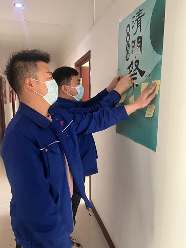 受新冠肺炎疫情影響,避免人群聚集,黨支部制作了祭英烈、宣傳文明祭掃海報,張貼在樓道醒目位置,引導(dǎo)黨員干部在緬懷先輩的情懷中弘揚傳統(tǒng)、增進愛黨、愛國、愛社會主義的情感,通過留言寄語,表達對革命先烈的緬懷和崇敬之情,同時要求黨員干部要以身作則,努力在節(jié)儉治喪、文明祭掃等方面作表率,以實際行動影響和帶動身邊群眾,做文明之風(fēng)的倡導(dǎo)者和傳播者,做革除陋習(xí)的先行者、移風(fēng)易俗的推進者、文明祭祀的示范者。