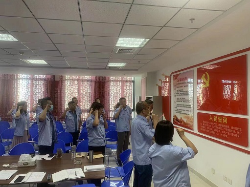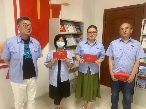 胡日查同志宣讀了集團(tuán)公司黨委審批通過(guò)齊樂(lè)、張學(xué)敏兩位同志成為中國(guó)共產(chǎn)黨預(yù)備黨員,莊永飛、劉濤兩位同志按期轉(zhuǎn)為中國(guó)共產(chǎn)黨正式黨員相關(guān)事宜,并向齊樂(lè)、張學(xué)敏兩同志表示了衷心祝賀,要求她們?cè)诮窈蟮膶W(xué)習(xí)和工作中不斷用實(shí)際行動(dòng)踐行初心使命,以黨員的標(biāo)準(zhǔn)嚴(yán)格要求自己,時(shí)刻保持共產(chǎn)黨員的良好形象、先進(jìn)本色。隨后,胡日查同志帶領(lǐng)齊樂(lè)、張學(xué)敏兩位同志和其他全體黨員同志高舉右手,莊嚴(yán)宣誓,再一次重溫入黨誓詞,重憶入黨初心。齊樂(lè)、張學(xué)敏兩位同志表示,作為新時(shí)代的青年,將牢記黨的宗旨,牢記入黨初心和使命,腳踏實(shí)地做好本職工作,以飽滿的熱情和昂揚(yáng)的斗志投入到工作中去。